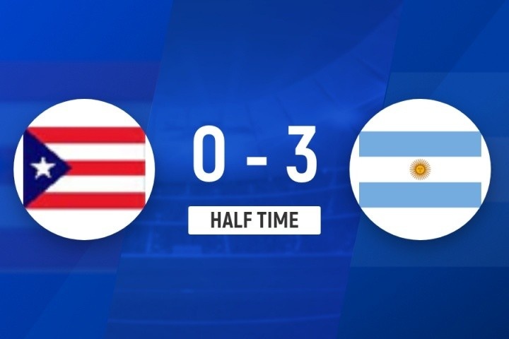 加时补赛1分钟。上半场赛事 结束,阿根廷3-0波多黎各。