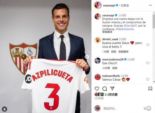 阿斯皮利奎塔社媒:我的热情和承诺一如既往,感谢塞维利亚的信任