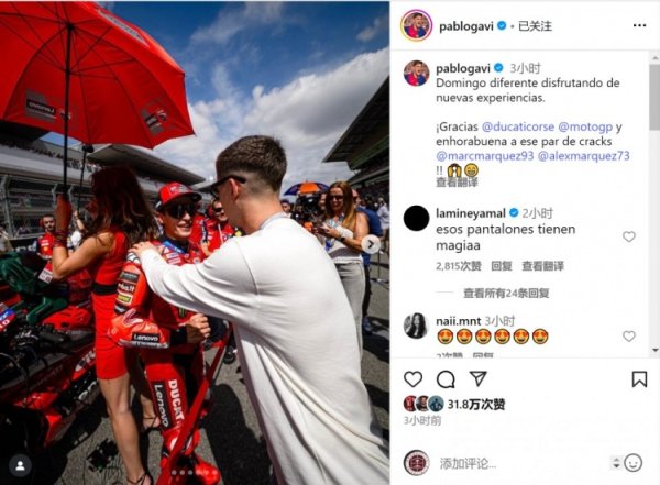 加维现场观战MotoGp赛事 ,社媒晒照:全新的感受