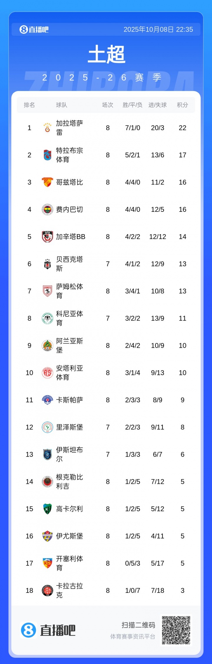 至此,苏超直播在线观看土超新赛季开赛8轮,已经有6位主帅被球队解雇,其中包括已经转而执教本菲卡的穆里尼奥。