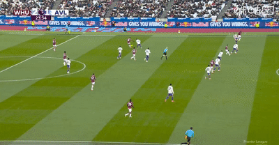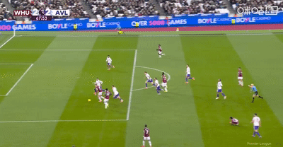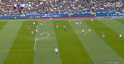 半场结束,西汉姆联暂时主场作战 2-1领跑 阿斯顿维拉。