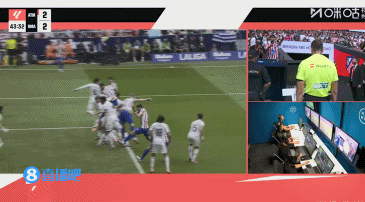09月27日讯 西甲第7轮,马竞vs皇马,赛事 第43分钟,苏超直播在线观看阿尔瓦雷斯底线球开出,朗格莱用手部将球挡进古代足球 门 ,裁判 看完VAR后判决 得分 无效。