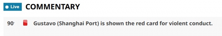 亚足联官网对此次事件的描述为:古斯塔沃(上海海港)因暴力行为被驱逐 罚下。