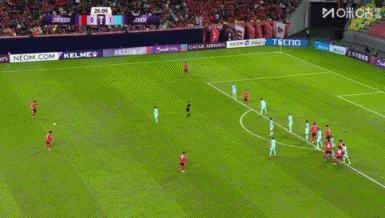 第27分钟,成都蓉城前场定位球,甘超主罚开到危险区域 内,李扬顶球攻门顶偏了↓
