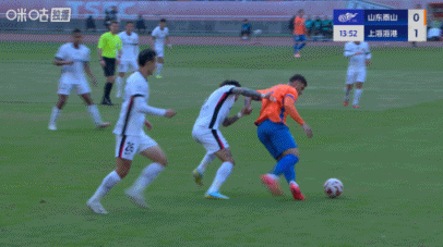 第34分钟,李新翔左路危险区域 里接队友分球后连过两人后打门被封堵。↓