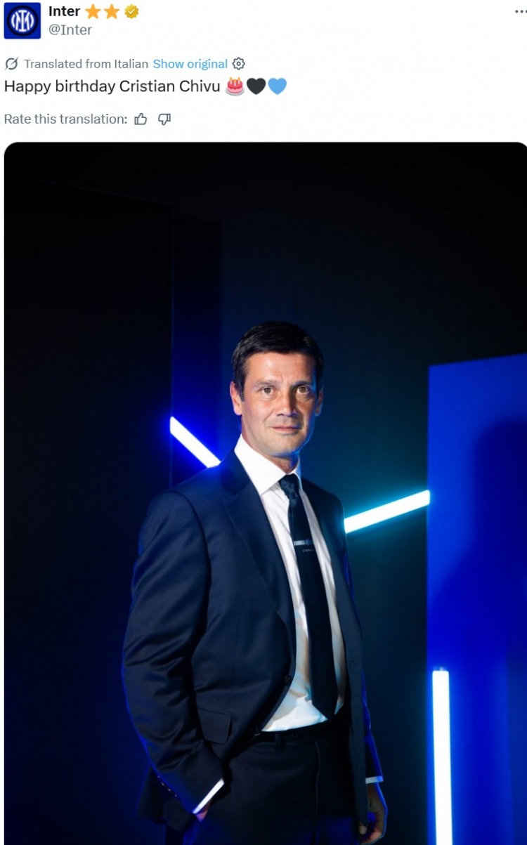 10月26日讯 今天是国米主帅齐沃45岁生日,国米官推也晒照为其送上生日祝福。