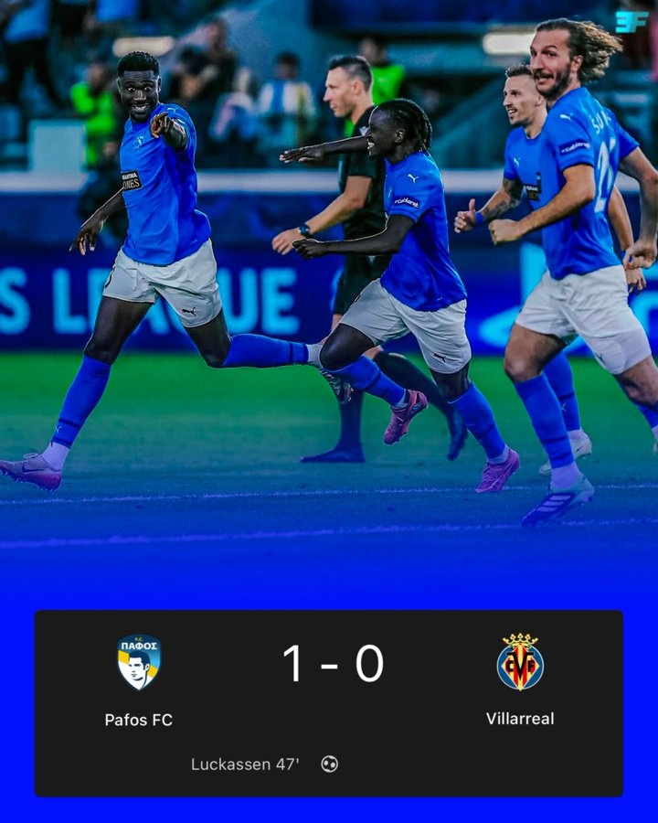 11月6日讯 塞浦路斯球队帕福斯在欧冠1-0击败比利亚雷亚尔,收获一场获胜 。