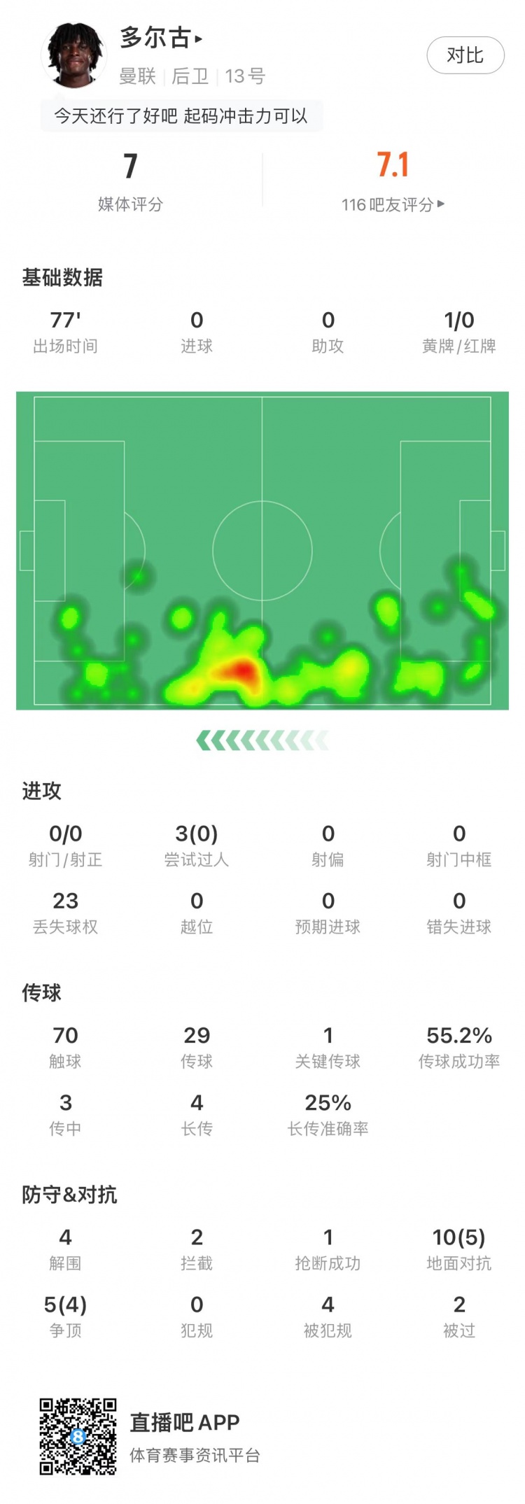 11月8日讯 在英超职业联赛 第11轮中,曼联客场应战 应战 热刺。此役多尔古担任曼联的杆位左翼卫,直到第77分钟时被换下。他在防卫 端表现可圈可点,不过处理球方面仍暴露一些问题。