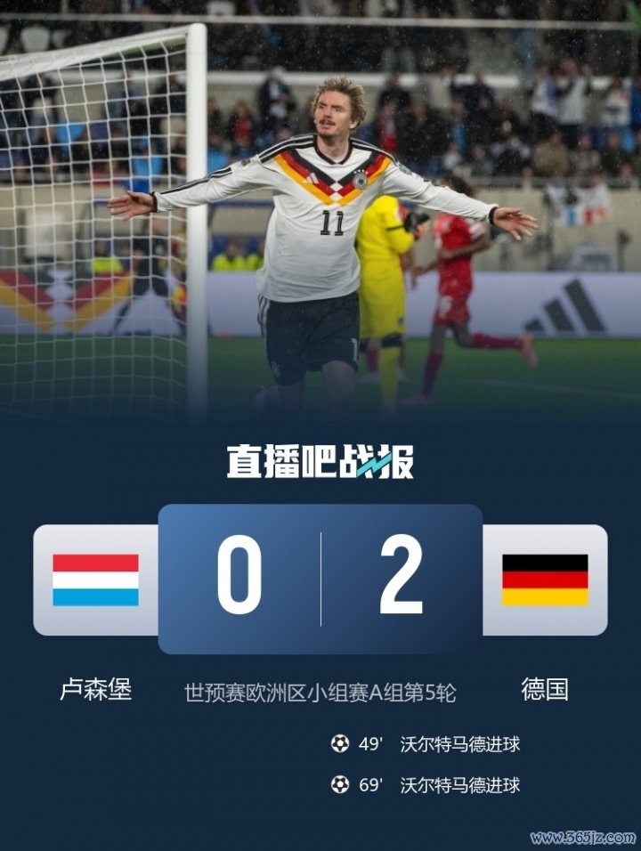 11月15日讯 世预赛欧洲区小组赛第5轮,德国客场应战 2-0击败卢森堡,沃尔特马德包抄连进两球。德国末轮打平斯洛伐克就能以头名出线。