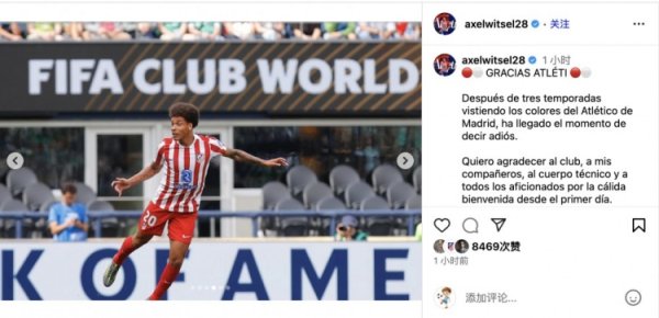 维特塞尔社媒深情告别马竞:能够捍卫这件运动活动 服 是一种荣誉 ❤️🤍