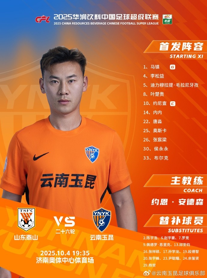 山东泰山vs云南玉昆 本场赛事 杆位阵形 出炉